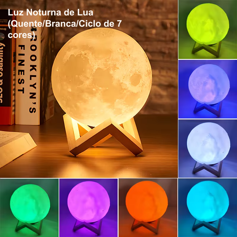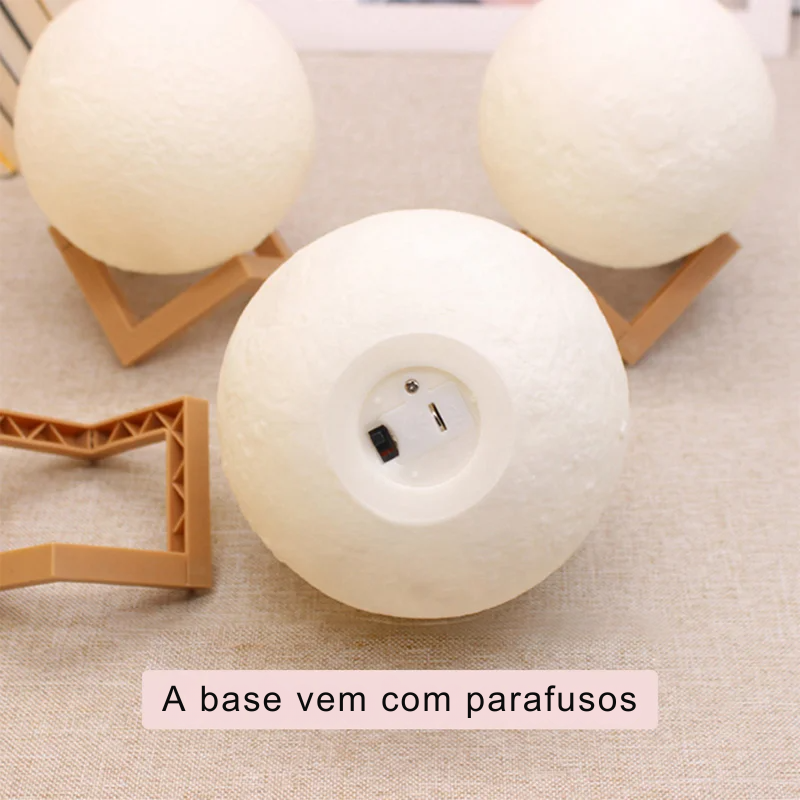 Transforme qualquer ambiente com a Luminária Noturna em Formato de Lua 3D, um item decorativo encantador que combina design moderno, iluminação suave e um efeito visual realista da superfície lunar. Ideal para quartos, salas, escritórios ou como presente criativo.