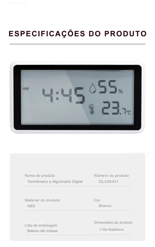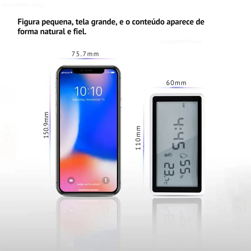 O Termômetro Digital MIJIA é a solução prática para acompanhar temperatura, umidade do ar e horário em um único visor. Compacto, moderno e fácil de usar, ele é ideal para ambientes internos como quartos, salas, escritórios e cozinhas.